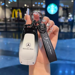 Mercedes-Benz Steel key cover + key chain - Black White