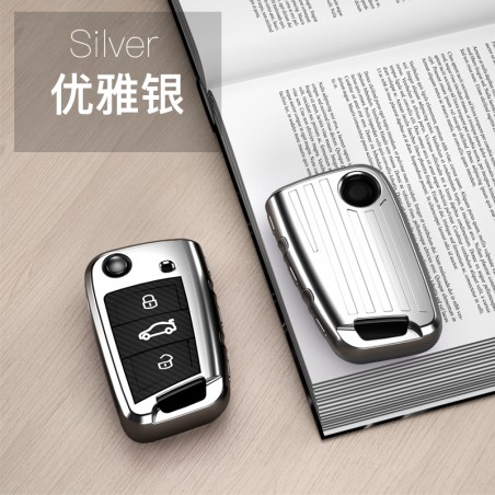 Volkswagon TPU carbon fiber key cover (B) - Silver